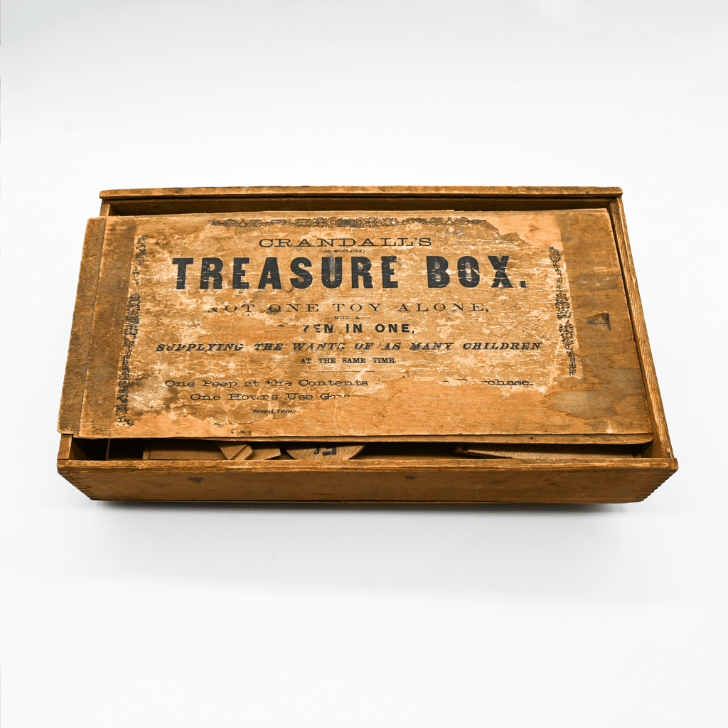 Crandall’s Treasure Box was created by toy inventor Charles Martin Crandall. Charles was best known for his invention of Crandall’s Blocks, which were originally created to help his sick children in the 1860s.