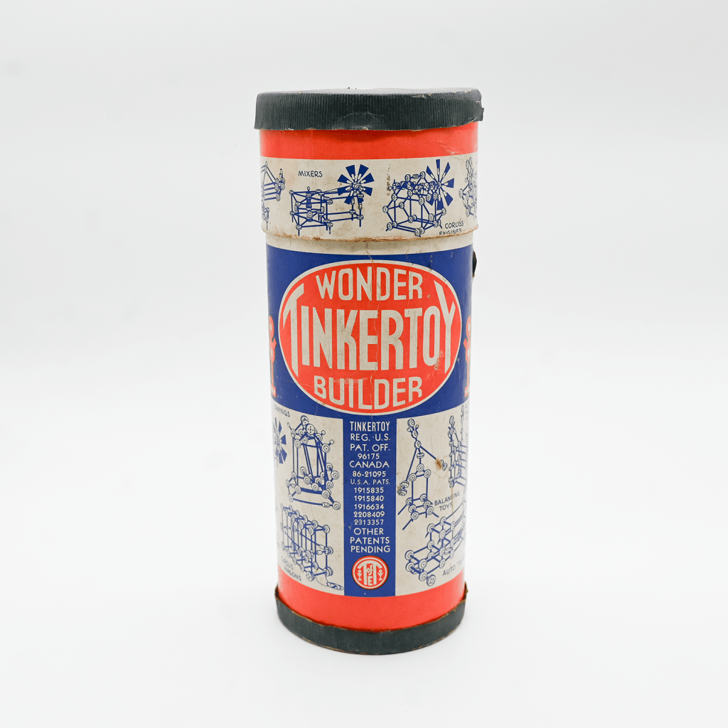 TinkerToy Wonder Builder was produced by The Toy Tinker Inc in Evanston, IL. TinkerToys were invented in 1914 by Charles H. Pajeau.